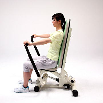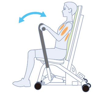 両手でアーム部分を握り、前に押して腕をまっすぐに伸ばし、元の位置へ引き戻してリハビリ・トレーニングします。