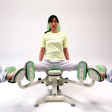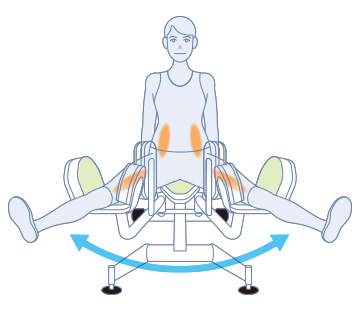 両脚を中央に向けて閉じ、元の位置まで開いてリハビリ・トレーニングします。